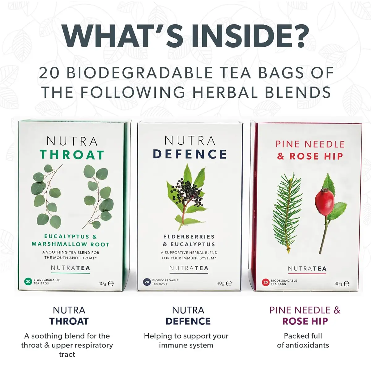 • Pine Needle & Rose Hips – Packed full of antioxidants & Vitamin C.